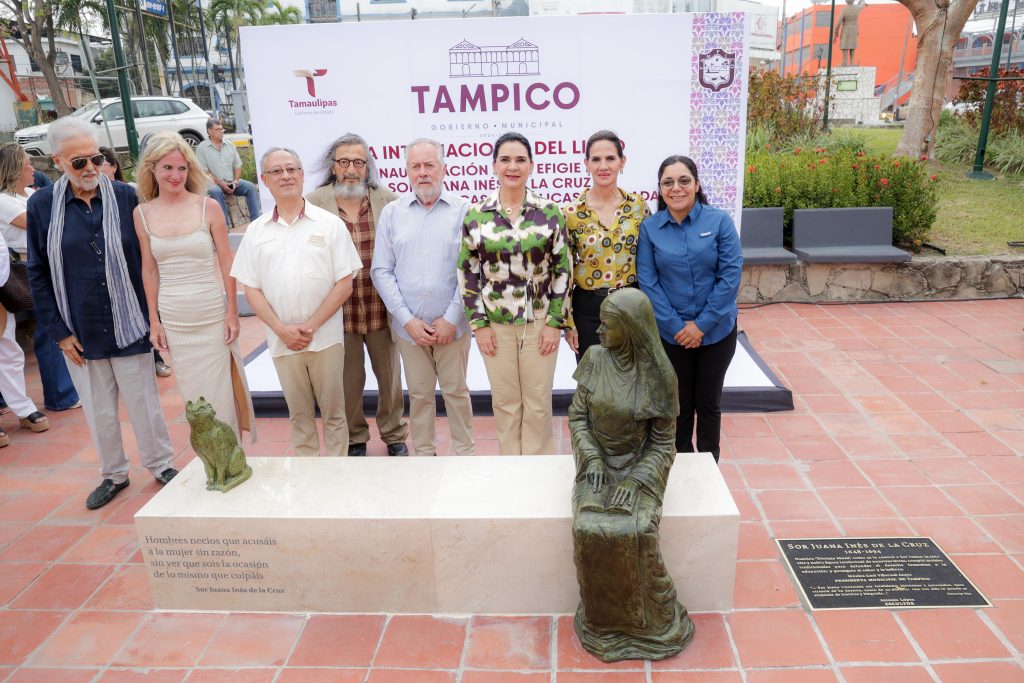 Tampico, Tamaulipas. -En el marco del Día Internacional del Libro, la presidenta municipal, Mónica Villarreal Anaya, encabezó la develación de placa de la escultura de Sor Juana Inés de la Cruz en la Plaza de las Artes, rindiendo homenaje a una de las figuras más emblemáticas de la literatura en lengua española, símbolo de inteligencia, libertad y pensamiento crítico y de la lucha por el acceso de las mujeres al conocimiento.