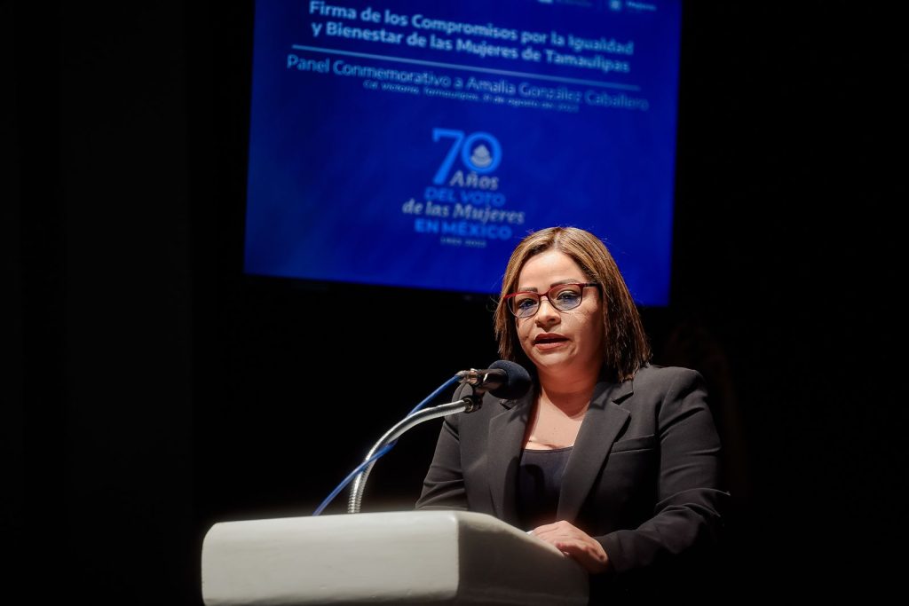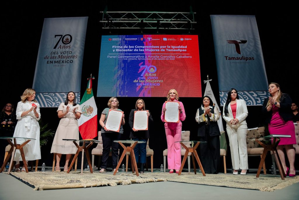 En el marco del 70 aniversario del voto de las mujeres en México y con la asistencia de la presidenta del Instituto Nacional de las Mujeres, (INMUJERES) Nadine Gasman Zylbermann, se firmó este compromiso por parte de la secretaria de Bienestar Social, Verónica Adriana Aguirre de Los Santos, en representación del mandatario estatal y la directora general del Instituto de las Mujeres en Tamaulipas, Dianaluz Gutiérrez González.